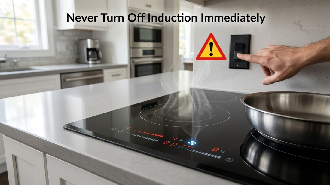 Both types of cooktops retain substantial internal heat after use. This heat must be safely dissipated before full shutdown — and your cooktop is designed to handle that automatically, if you let it.