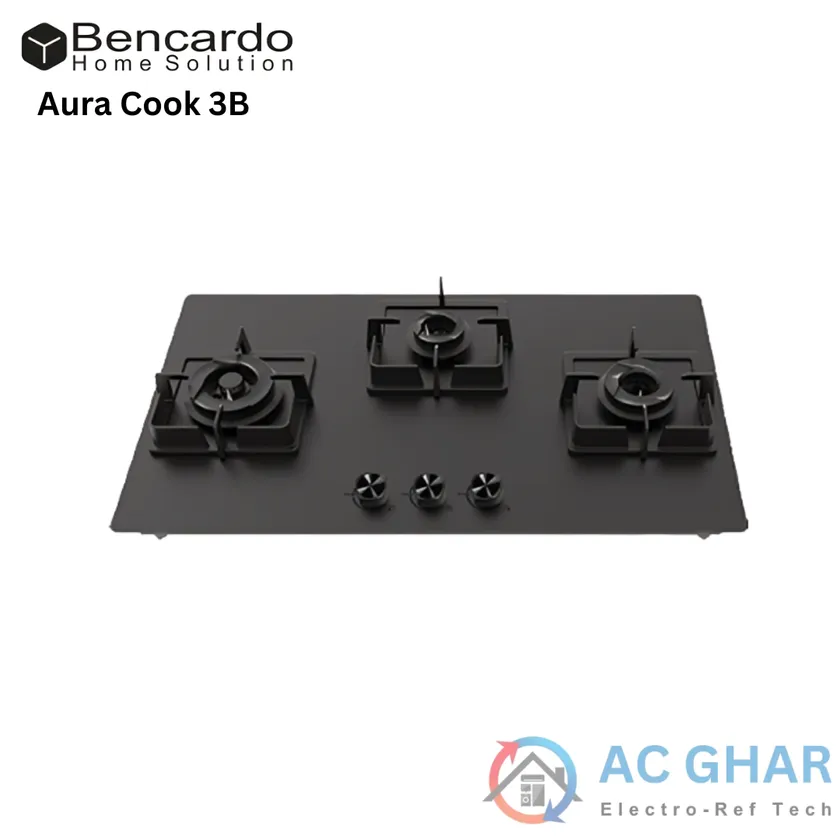 The Bencardo Auracook 3B is a premium 3-burner auto-ignition gas hob designed for fast, safe, and efficient cooking. With durable 6 mm tempered glass, sturdy cast-iron pan supports, and high-performance Q-type burners, it delivers even heat and effortless control — perfect for everyday family cooking.