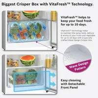 Vitafresh helps to keep your food fresh for up to 10 days. Vitafresh technology helps to maintain the same taste, texture & aroma of your fruits and vegetable for up to 10 days with a specially crafted wave design crisper box.