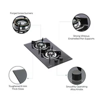 Equipped with 2 double ring forged brass burners: 1 large and 1 small for versatile cooking needs. -
