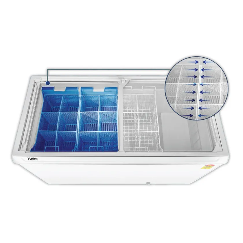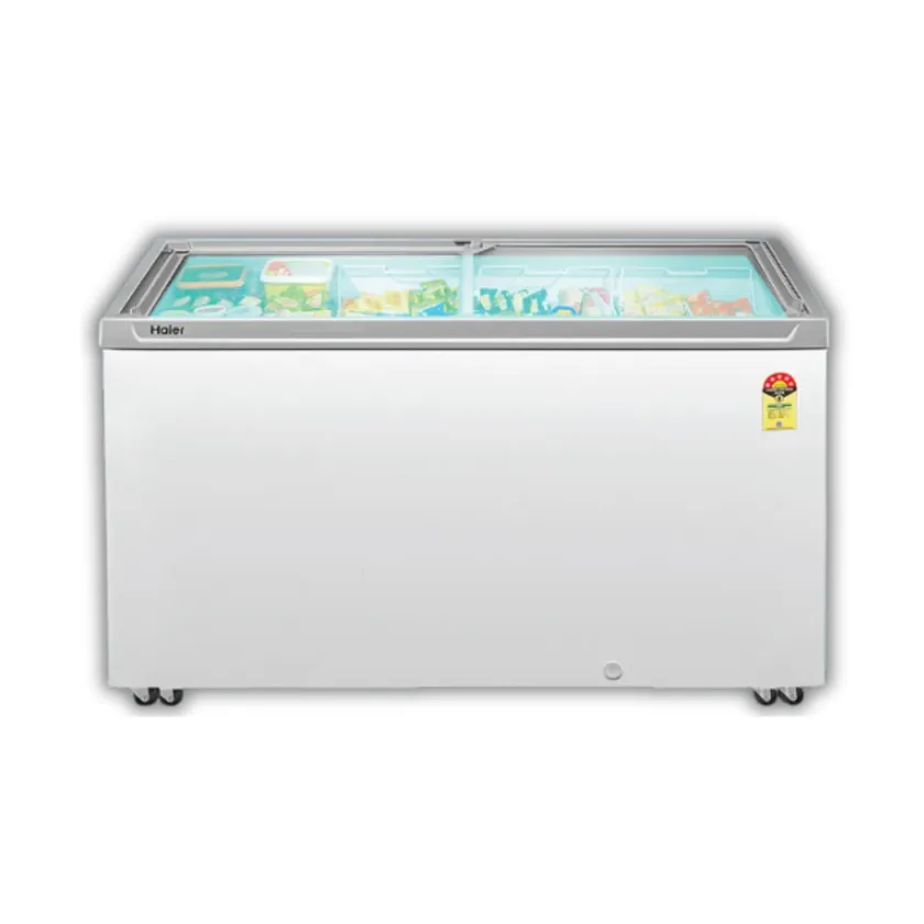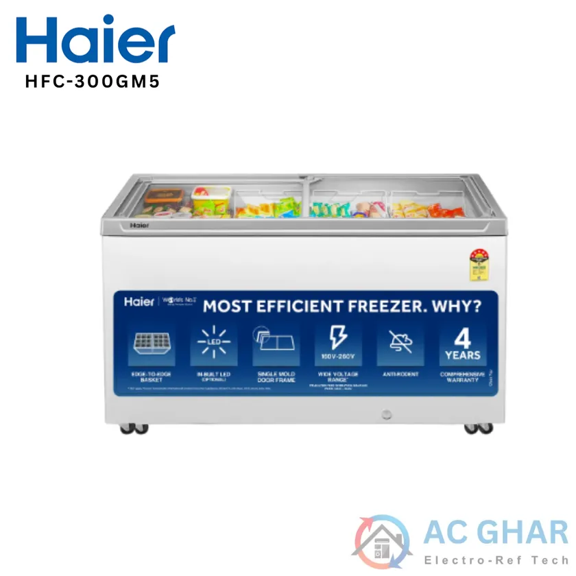 The Haier 300 Liters Sliding Door Chest Freezer – HFC-300GM5 is a high-capacity, energy-efficient freezer designed for commercial and home use. With a durable glass top, powerful cooling below −18°C, and a 5-star rating, it ensures reliable frozen storage with low power consumption.