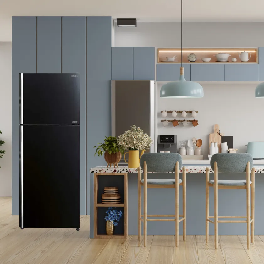 The Hitachi R-VG420PB is a stylish and efficient double door refrigerator designed for modern households. With a capacity of 375 liters and a sleek brilliant black finish, this frost-free inverter refrigerator combines advanced cooling technology with user-friendly features.