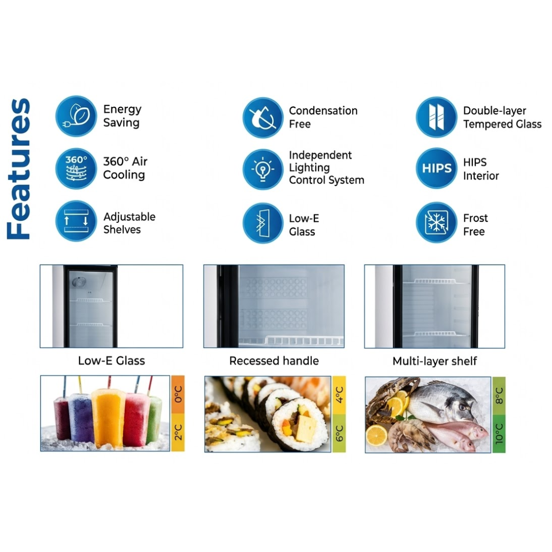 Visi coolers provide uniform cooling, maintain a temperature between 1 to 10°C, and are ideal for storing and displaying items like milk products, chocolates, juice, beverages, etc. These coolers are vertical in height and have double-layered vacuum glass doors, ensuring that products are easily visible. Visi-coolers feature clear glass doors and interior lighting for a beautiful presentation of beverages and refrigerated and frozen food. Our coolers and freezers are available in various sizes and clearly showcase products without the need to open the doors. VISI coolers are also known as Visible Coolers, capable of maintaining the temperature range between 1 to 10°C.