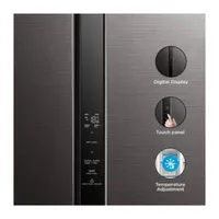 The refrigerator features an intuitive digital touch control panel that allows you to easily adjust the temperature with a simple touch. It enables independent control of the fridge and freezer compartments, ensuring precise and convenient temperature management.