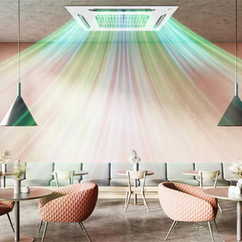 For Four-way Cassette& Four-way Cassette Silent Type: By adding digital tube on the display board, Error Codes can be displayed directly for troubleshooting. For Four-way Cassette Silent Type: The newly designed fan blade, air deflector and the built-in throttling part reduce noise greatly. Drain pump can pump condenser water up to 750mm high, which simplifies installation of the drain piping system.